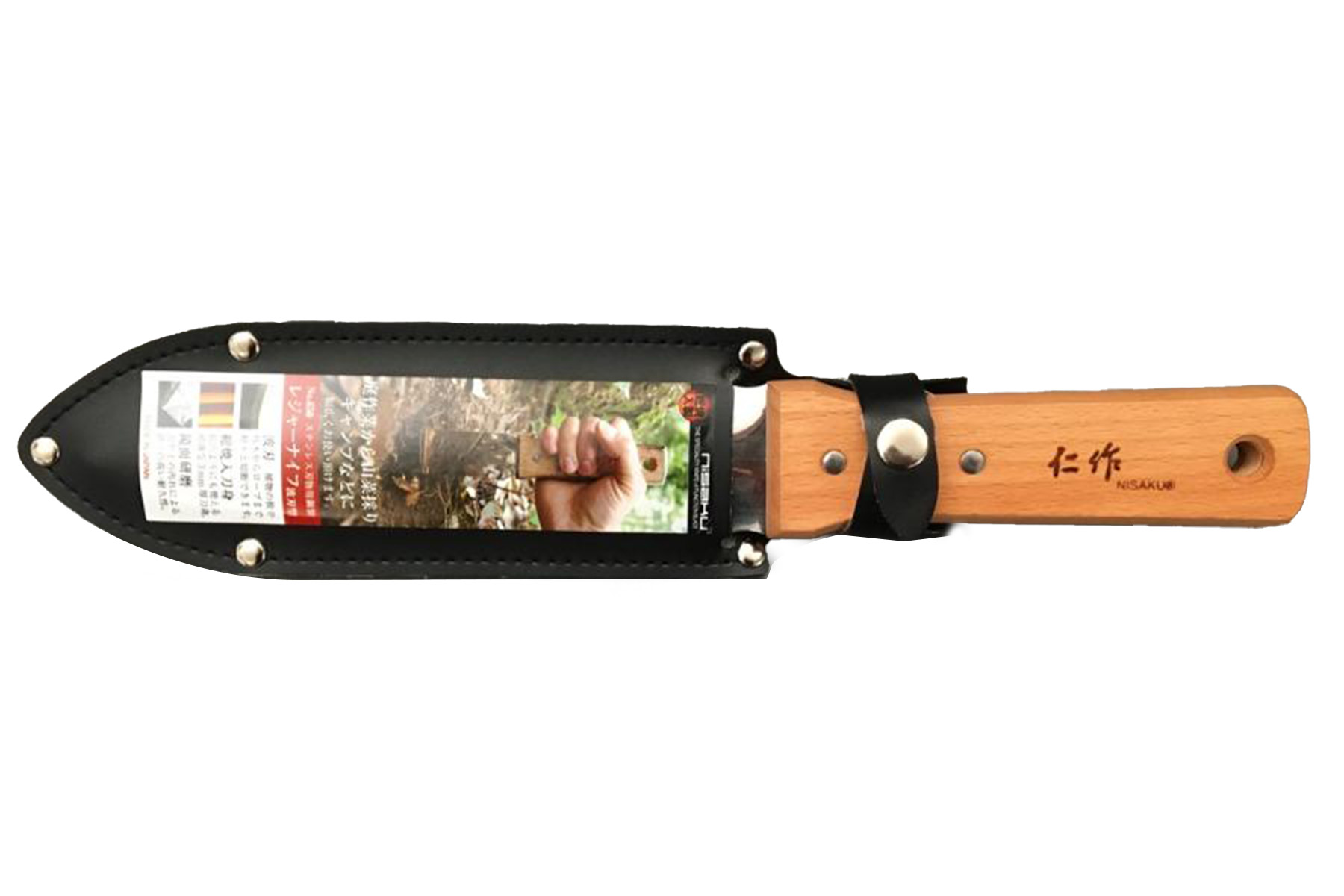 Ce couteau japonais hori-hori est livré avec un étui cuir.