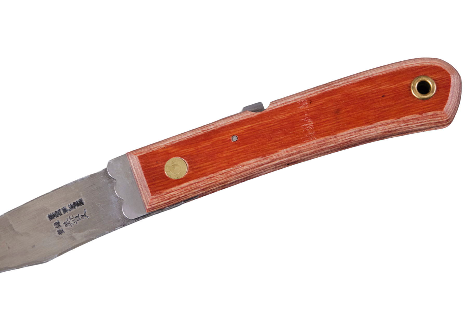 La lame de ce petit couteau japonais s'inspire directement de la forme traditionnelle du sabre de samouraï. Le tranchant est asymétrique, c'est-à-dire aiguisé d'un seul côté uniquement. De ce fait, ce couteau convient uniquement aux utilisateurs droitiers.